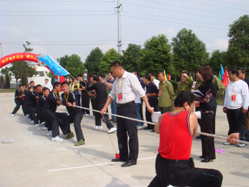 拔河场上,围满了助威加油的人,10名队员随着队长的号子“心往一处想,劲儿往一处使”,击败一个个强劲的对手,为公司赢得“第一金”!脸上挂满汗水,用磨出血泡的双手高高举起奖杯,大喊一声:“嘿!咱们工人有力量!”