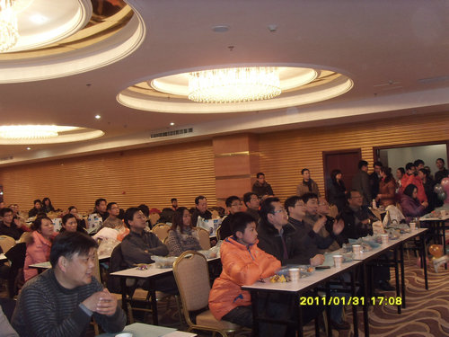 晚会在欢乐明快的《恭喜发财》歌声中正式开始,节目内容丰富多彩,有歌曲、舞蹈、诗朗诵、跆拳道、太极拳、古筝独奏、游戏等,联欢会过程中,公司还为职工准备了丰富的奖品,这些奖品穿插在节目中进行抽取。最后联欢会以人才中心一首大合唱《同一首歌》结束,表达了公司全体职工愿意与公司“同呼吸、共命运、心连心、齐发展”的心愿。整台晚会精彩纷呈,明快大气,节目可圈可点,笑语欢声不断,充满了欢快和喜庆的气氛,为2011年的工作注入了强大的精神动力。