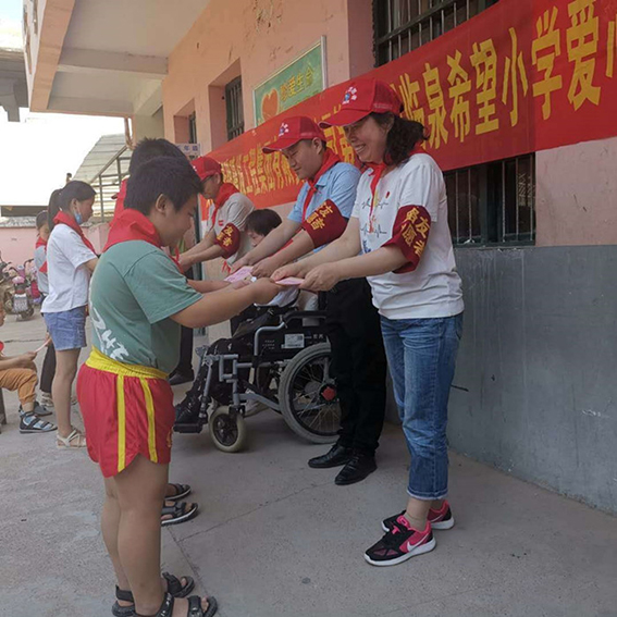 2020年6月1日国际儿童节,为了让贫困儿童度过一个快乐而有意义的节日,六一儿童节当天上午,mansion88明升集团志愿者第十七次到临泉城关镇希望小学开展爱心助学活动,为师生们送去10000元爱心助学金,尽我们微薄的力量圆一份贫困学子的求学梦。截止本期,mansion88明升集团已开展爱心助学十七期,共资助优秀学生102名,贫困学生102名,优秀教师85人次,捐助资金22万元。