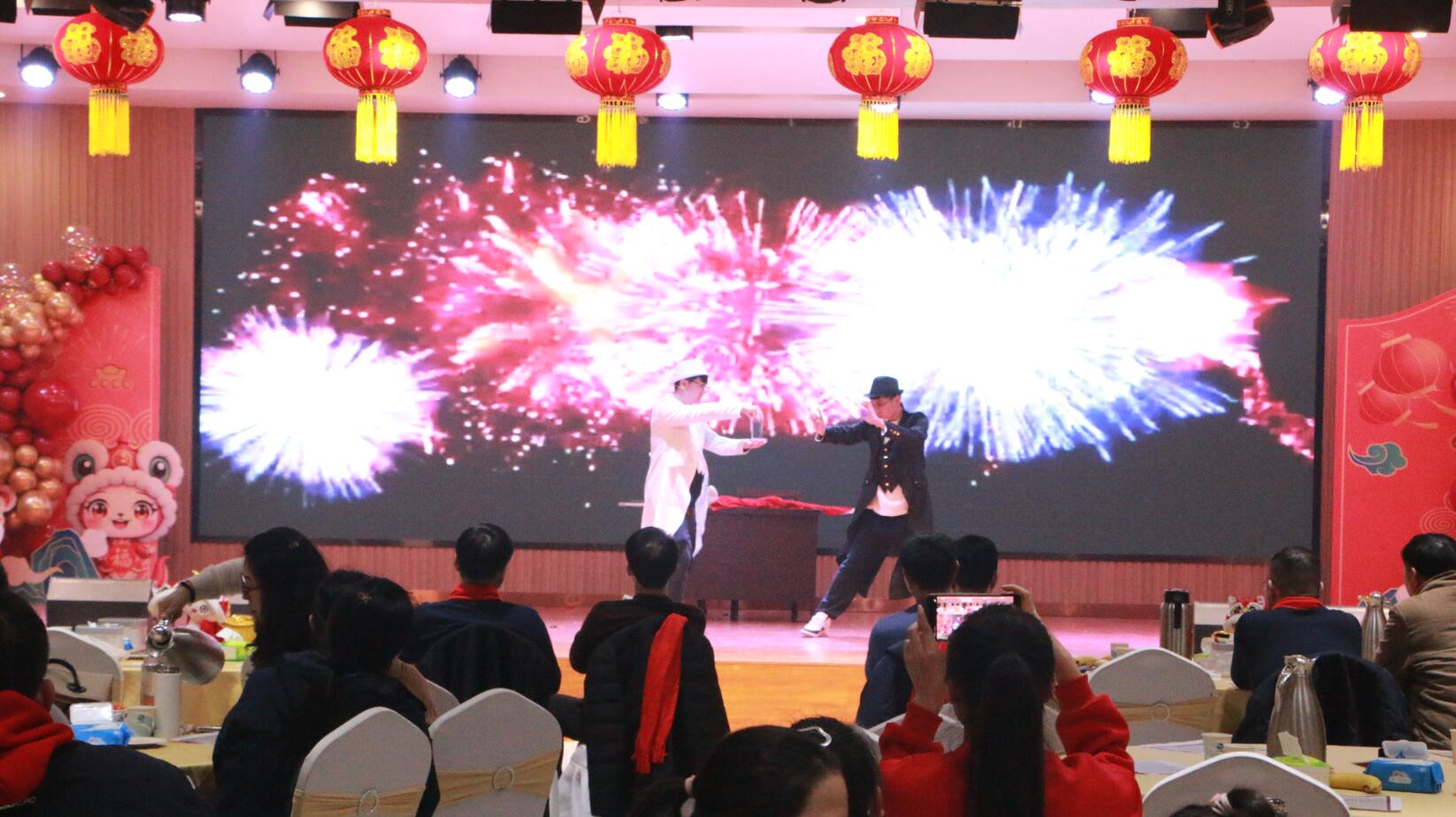 联欢会上,集团职工各显才艺、尽展所长,舞蹈、歌曲、小品、魔术、鼓乐、朗诵等文娱节目轮番上演,将会场推向一个又一个高潮。穿插于节目之间的互动抽奖环节,更是惊喜连连,让现场掌声不断。整个会场洋溢着喜庆欢乐的气息,充满了浓浓的节日氛围。