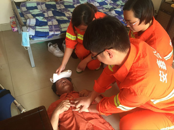 救援小组对触电受伤者进行急救
