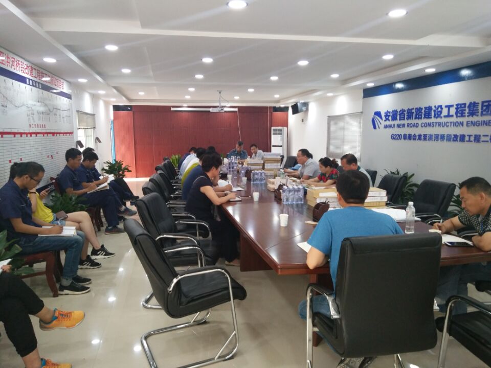 6月14日下午,以阜阳市交通建设工程质量安全监督局局长王飞、副局长崔纪强组成的检查组到集团公司承建的G220阜南会龙至洪河桥段改建施工项目部进行2017年上半年度综合督查。集团公司副总经理李超、G220二标常务副经理张仕龙等主要领导陪同进行综合监督检查。