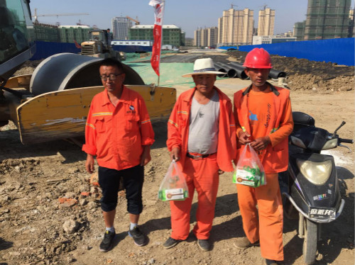 近日持续晴热高温天气,这对坚持在一线的工人带来了不小的挑战。对此,我项目部领导高度重视,采取切实有效的防护措施,坚持以人为本,认真做好一线工人的防暑降温工作。6月7日,“送清凉”小分队分别来到各班组施工现场,代表项目部看望慰问施工现场的作业人员,并将防暑降温用品送到他们手中。再三叮嘱他们在夏季高温时段工作时一定要注意安全,防止中暑,并对他们付出的辛勤劳动表示感谢。