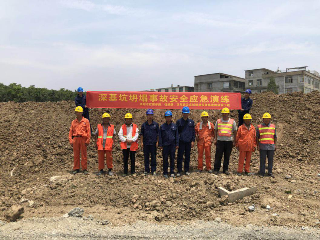 为增强安全防范意识和提高应急处置能力,强化应对各类事故的自救和抢险技能,提高快速反应能力、应急救援能力以及协同作战能力,全面提高抵御各类事故的能力,确保一旦发生突发事故,能够有效组织快速反应、高效运转、临事不乱,最大限度地减少事故危害,2018年6月17日下午16:00,颍州经济开发区路网建设工程PPP项目项目部结合施工现场实际情况,组织开展了深基坑坍塌事故安全应急演练,项目部及班组人员参加。