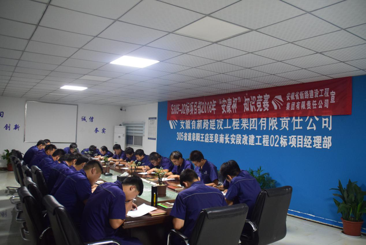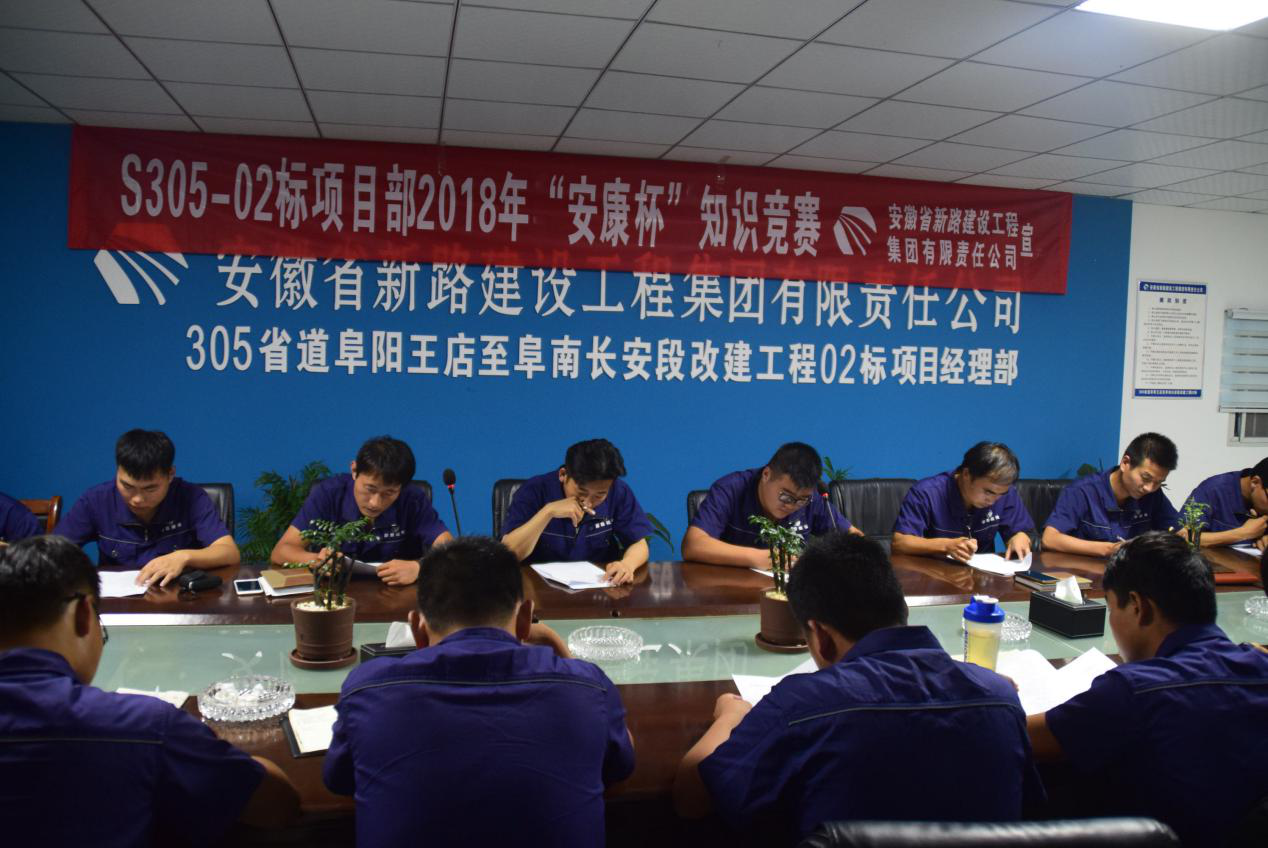 时值项目部深入开展以“生命至上 ,安全发展”为主题的全国第十七个“安全生产月”活动,为提升项目部安全工作管理水平及员工安全防范意识,根据305省道阜阳王店至阜南长安段改建工程02标“安全生产月”活动实施方案的要求,项目部于2018年6月20号晚举办“安康杯”安全知识竞赛活动。