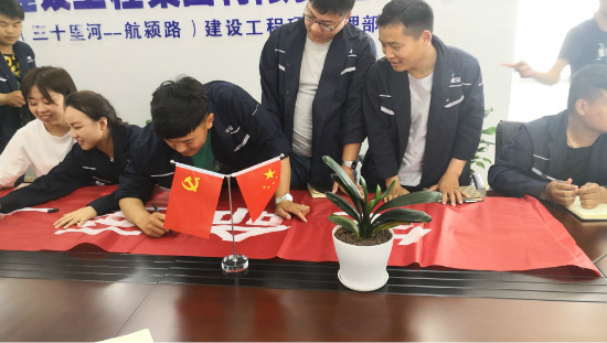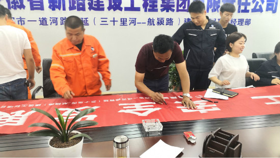 会上由项目副经理刘波宣贯公司、业主、监理关于本年度安全生产月的相关文件以及要求。安全科负责人王岑宣读本项目关于“安全生产月”活动方案和具体实施措施。最后由项目负责人张仕龙宣布“安全生产月”活动正式启动,并带领大家在主题横幅上宣誓签名。