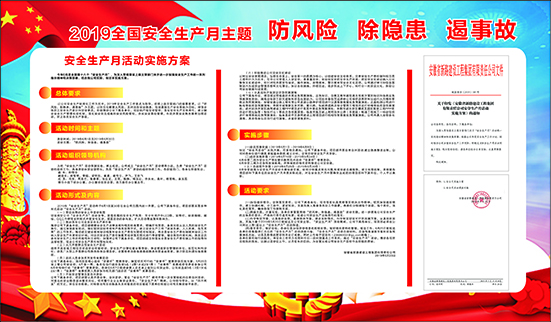 “安全生产月”活动期间,公司将按照安排,组织广大职工积极参与形式多样、内容丰富的各项活动,大力深入普及安全生产知识,提升安全技能素质。活动包括安全事故警示教育周、安全管理知识专题培训、安全管理自查自纠、应急预案演练周、“安康杯”竞赛等活动,将活动定盘定位,以确保“安全生产月”活动扎实有效开展。