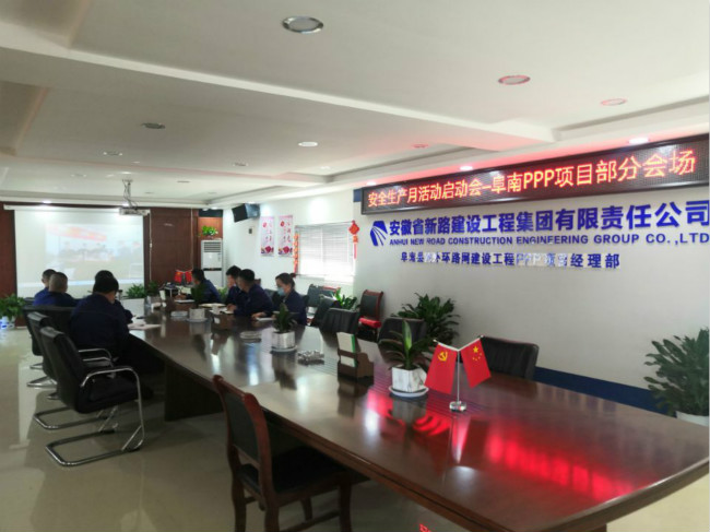 为深入广泛开展全国第十九个“安全生产月”活动,积极推进阜南县内外环路网建设工程PPP项目安全文化建设。6月2日上午,集团公司2020年“安全生产月”活动启动会在公司三楼会议室举行。结合疫情防控需求,启动会采用“主会场+视频分会场+个人客户端”的形式召开,阜南PPP项目安全生产领导小组全体人员在项目部分会场参加。