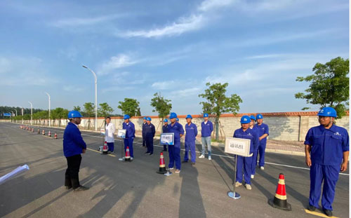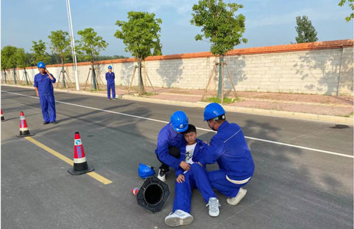 本次演练突出实战,模拟长安路路面摊铺现场施工过程中发生1名作业人员高温中暑急救事件,项目部立即启动应急响应,在现场指挥部统一部署下,各应急救援小组迅速行动,按照职责分工紧张有序展开救援。现场人员先将中暑人员抬到阴凉通风处,进行紧急救护,随后医疗救护组赶到,对中暑人员进行进一步救治,并紧急送往医院。最后,善后处理组对现场其他施工人员的身体状况进行排查,现场急