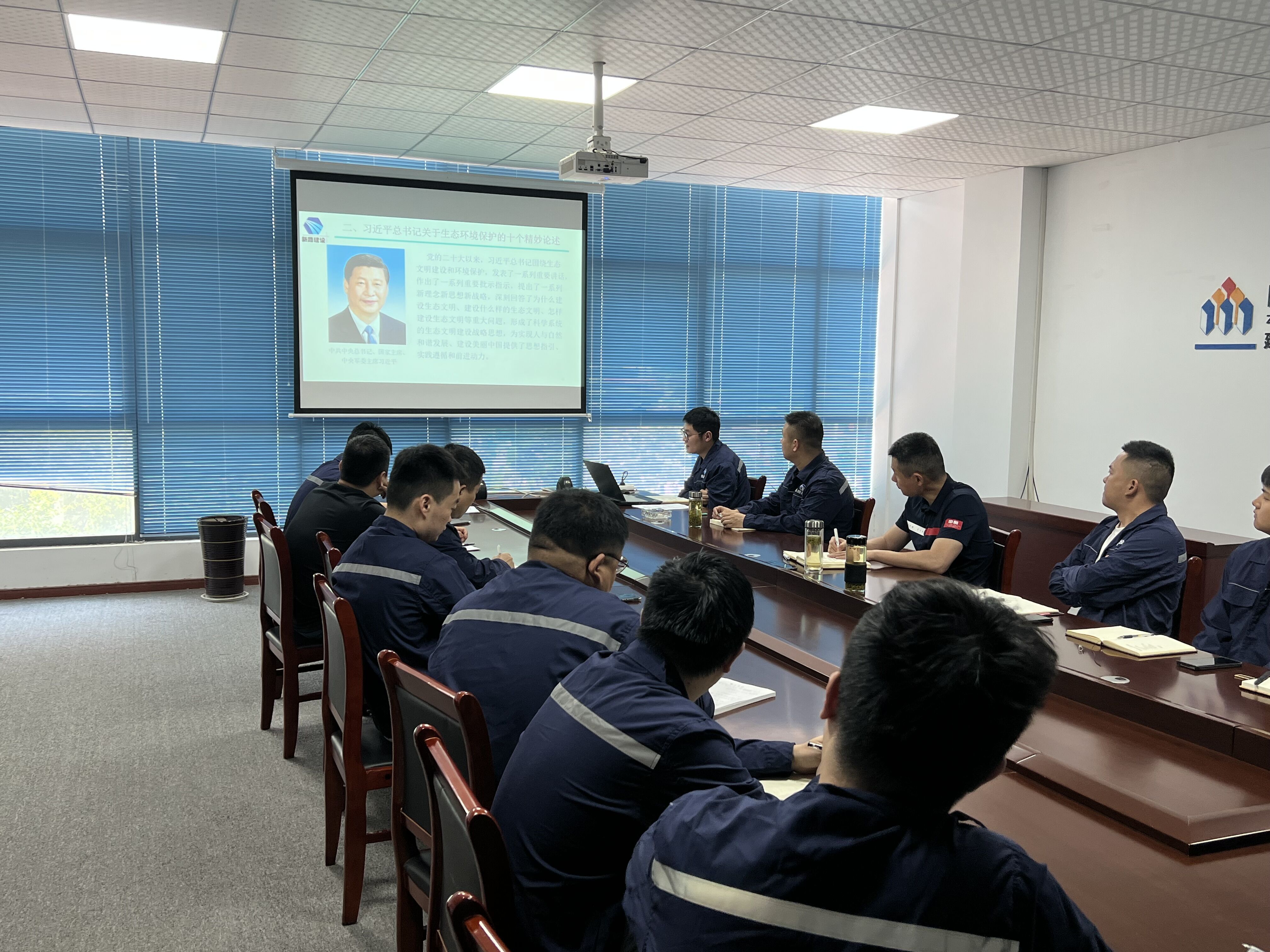 项目经理薛鸿儒宣布活动正式启动,并带领项目部全体人员集中学习习近平总书记关于安全生产的重要指示批示和生态环境保护的十个精妙论述。安全科科长梁争光组织全体人员观看2023年安全月主题宣传片《防为上》以及安全微电影《战线》,最后项目经理薛鸿儒起立带领项目部全体员工进行安全宣誓。