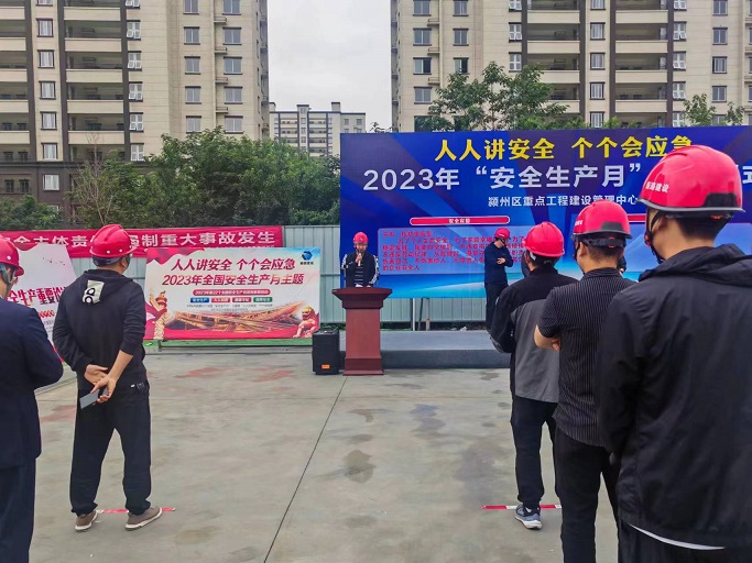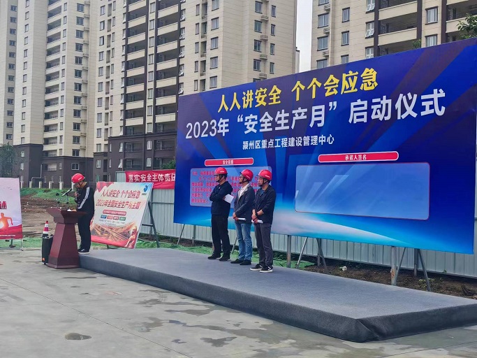 为贯彻国家的安全生产方针,落实安全生产责任制,树立“安全为天”的思想,突出“人人讲安全,个个会应急”的安全月主题,2023年6月15日上午阜阳市颍州区重点工程建设管理中心在天鹅湖公馆、市二院新区周边配套路网项目举行2023年“安全生产月”启动仪式.