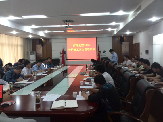 会议由蚌埠管理处副处长李锐主持,参加会议的有滁州高速交警二大队、蚌埠高速交警一大队、合蚌高速路政大队、蚌淮高速路政大队、蚌埠管理处有关科室及沿线各施工单位代表。主要议程有高速交警代表发言、高速路政发言、管理处领导发言及专题培训等。
