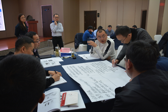 培训中,老师在带领大家学习复盘思想的应用方法后,让各小组就自己当前的实际工作进行复盘实操,并不断给予指导完善,从而引导大家进一步理解掌握复盘方法,并能够独立应用于未来的工作中;在变革领导力的学习中,老师采用游戏带入、头脑风暴等方法,促使大家转变工作角色和思维,不断提升团队工作效率;另外通过危机公关能力提升学习,让每一位管理者对危机有一个正确的认识,并学会如何科学处理危机事件,做到转危为机。