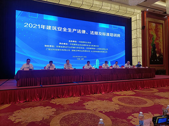 2021年9月24-26日,由中国建筑业协会主办,中国建筑业协会建筑安全与机械分会承办,安徽省建设行业质量与安全协会、中国建筑第八工程局有限公司、广联达科技股份有限公司、湖南汉坤实业有限公司、大汉科技股份有限公司协办的“2021 年建筑安全生产法律、法规及标准培训班”在合肥召开。来自全国各地的大型建筑施工企业的主要负责人、安全管理负责人及专职安全管理人员等500多位同仁到场,mansion88明升集团副总经理李超、安全部部长苗玉磊参加了本次培训。