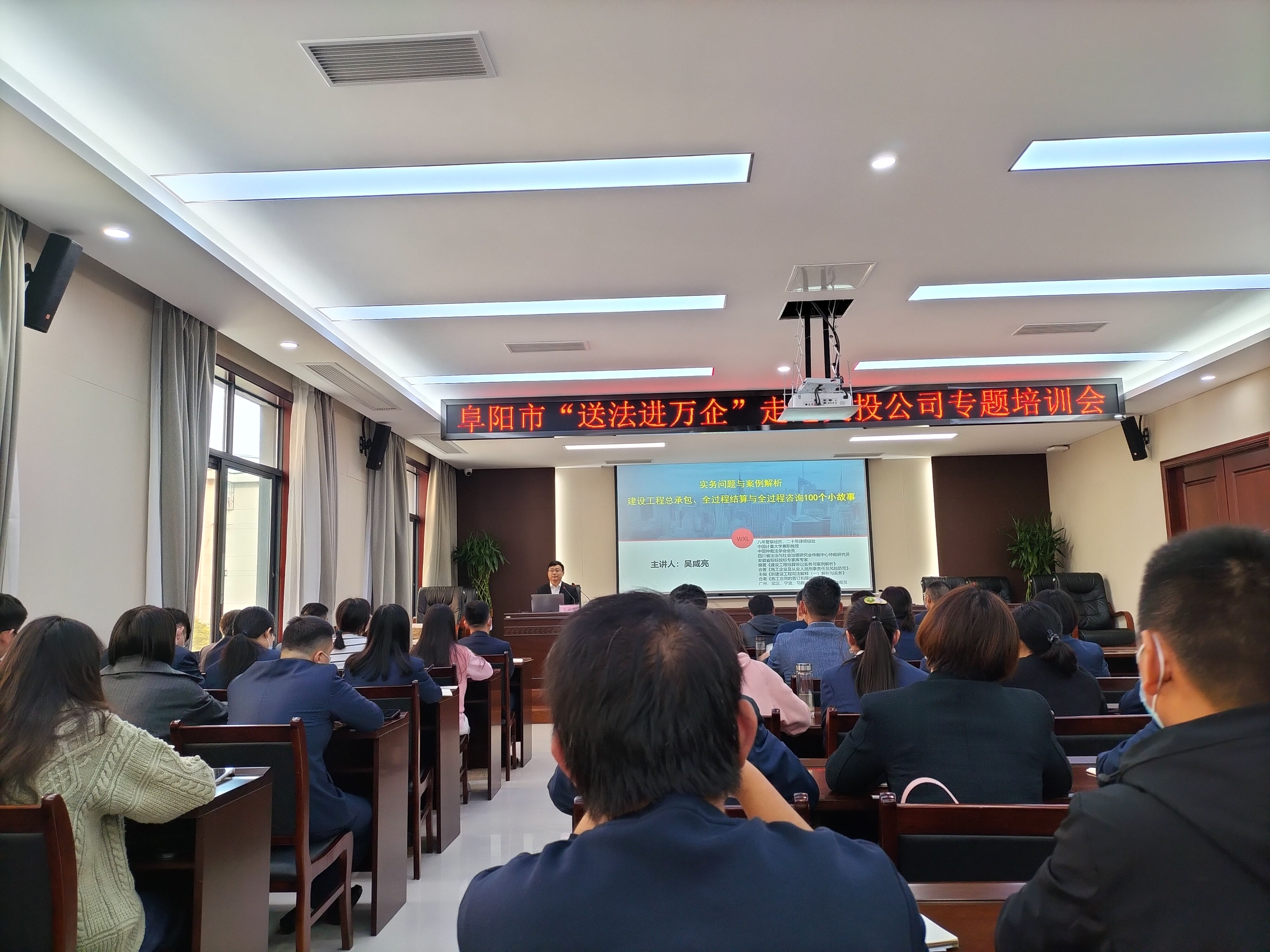 2021年10月28日,由阜阳市交通能源投资有限公司主办的阜阳市“送法进万企”走进交投公司专题培训会在交投公司三楼会议室召开,mansion88明升集团总会计师梁怀胜及相关项目管理负责人参加了此次培训。