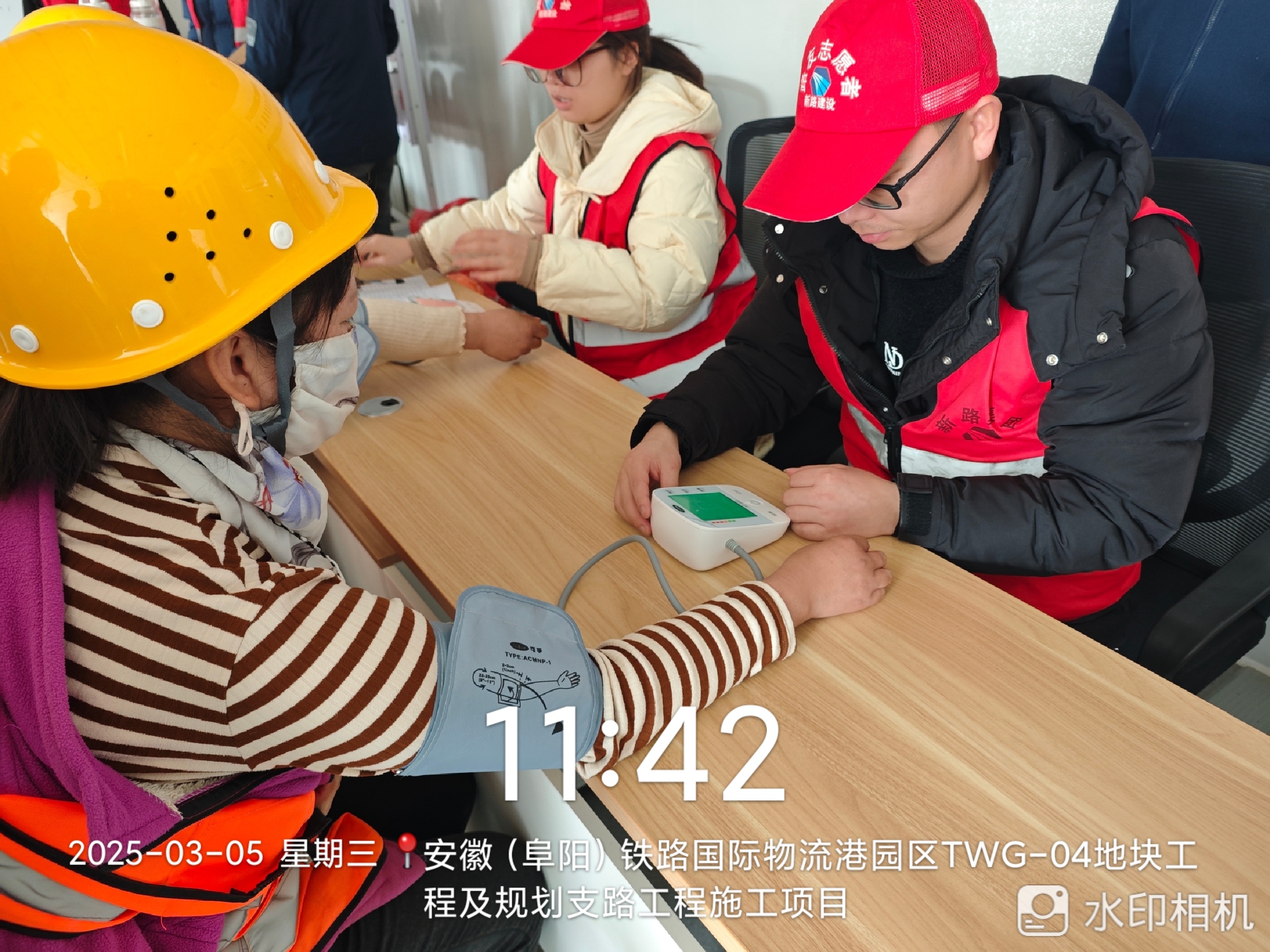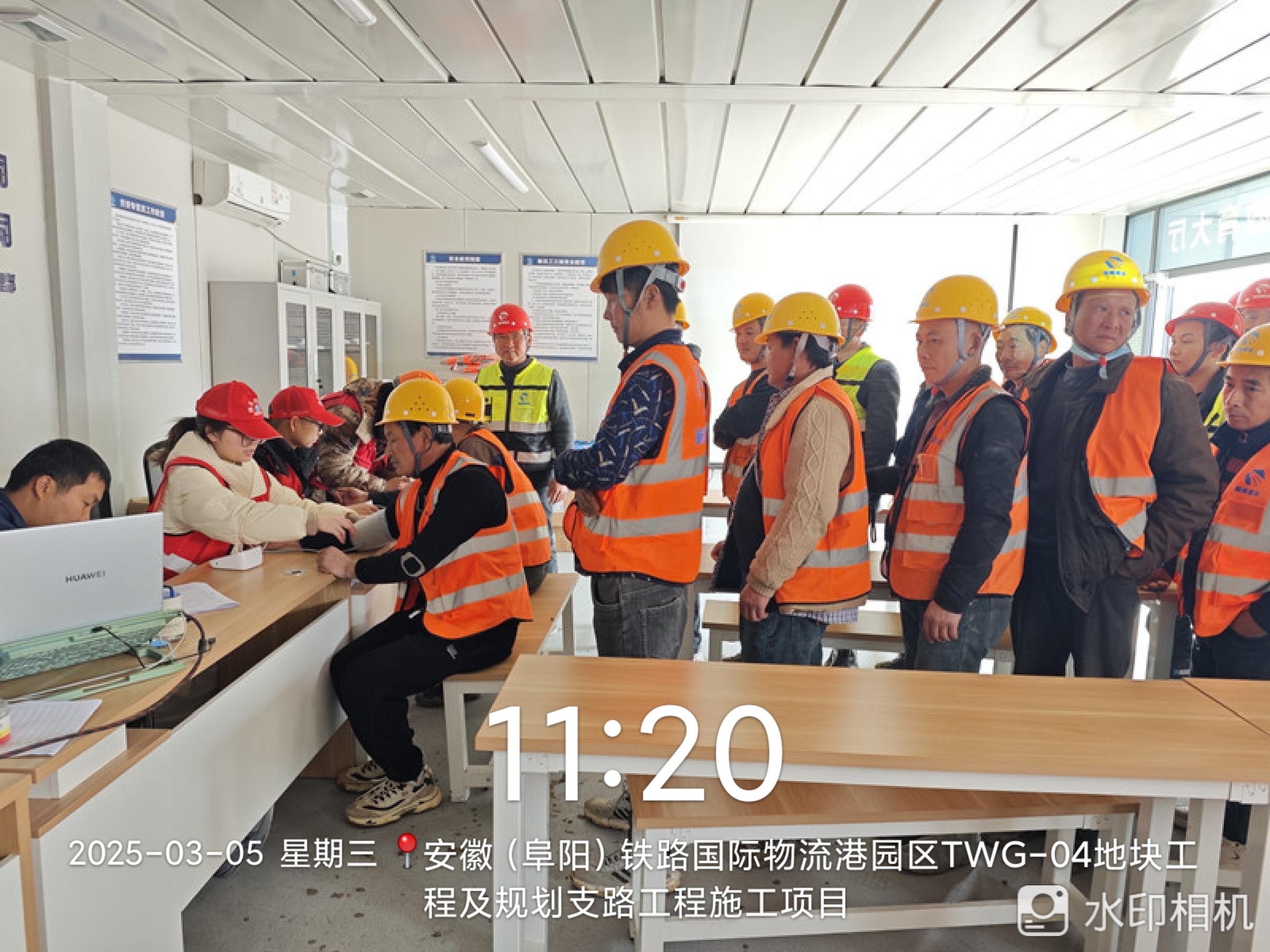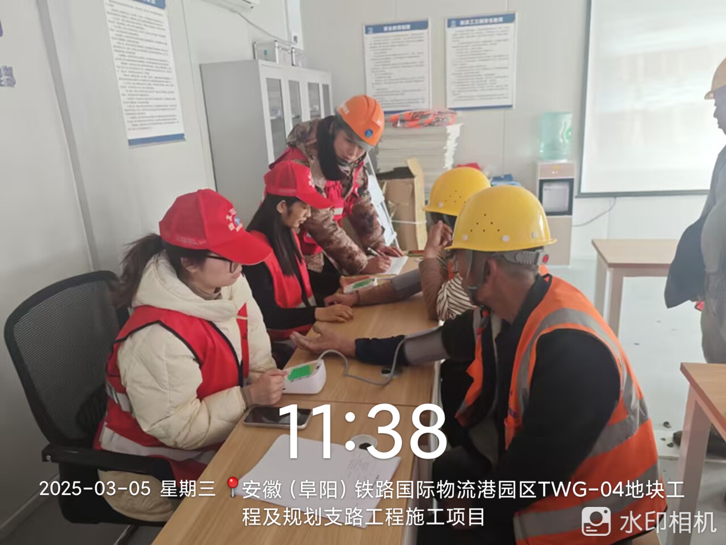 活动伊始,安全科、工程科管理人员通过生动案例和简洁明了的讲解,向工人普及高处作业、机械操作、临时用电等方面的安全要点,帮助他们提升安全意识,掌握实用的安全技能。其次,志愿者们现场为工人们测量血压,普及春夏季节常见疾病的预防知识,帮助工人预防疾病,保持良好的工作状态。