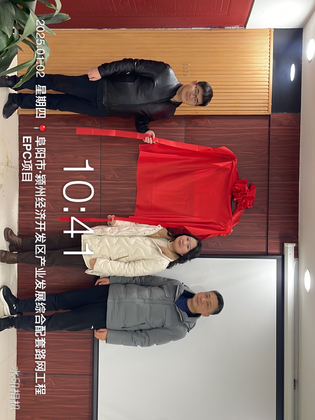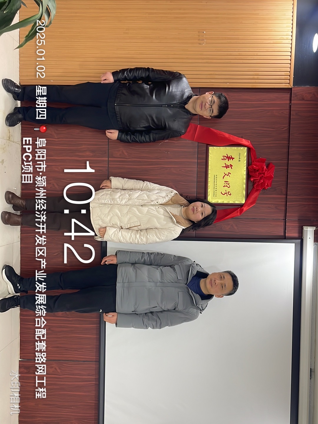 2025年1月2日颍州经济开发区发展综合配套路网工程EPC项目举行了阜阳市“青年文明号”揭牌仪式,总公司人力资源部部长魏静、项目管理中心刘家亮,项目经理钟尤志共同参加了此次揭牌仪式。