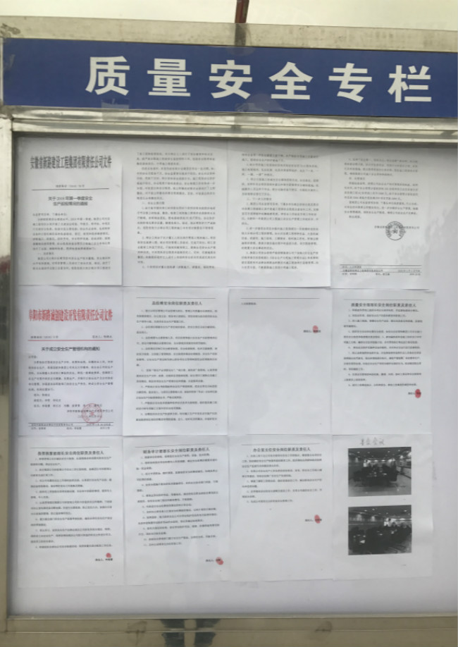 为了认真贯彻、落实“安全第一、预防为主,综合治理”的方针,进一步强化管理公司安全管理工作责任制,采取有效措施,预防和减少各类安全事故的发生,2018年4月10日我公司召开安全例会,设立安全生产管理机构,并及时建立安全生产责任制度并明确责任人;并将主要岗位安全生产职责和相关信息按要求进行公示,建立安全检查、事故报告、事故应急管理、专家论证、安全奖惩制度等。