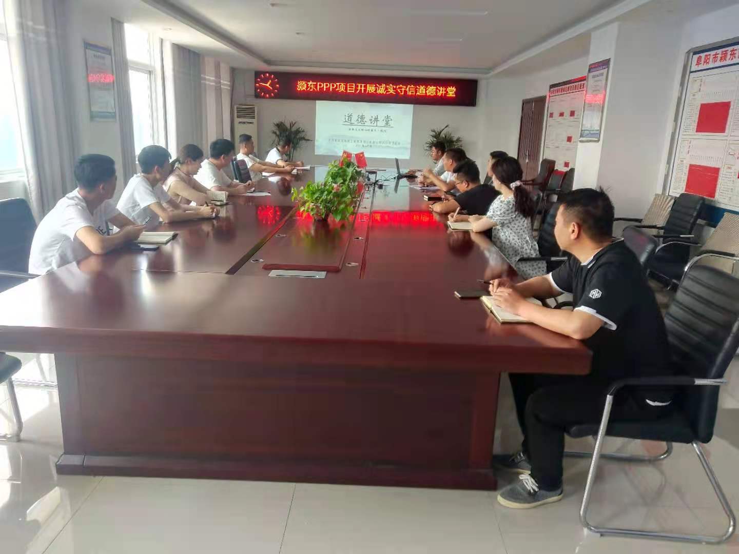 6月8日下午,mansion88明升鼎盛公司携手颍东PPP项目部共同开展诚实守信道德讲堂活动。活动由项目经理王震主持,项目部成员及鼎盛公司员工参加。
