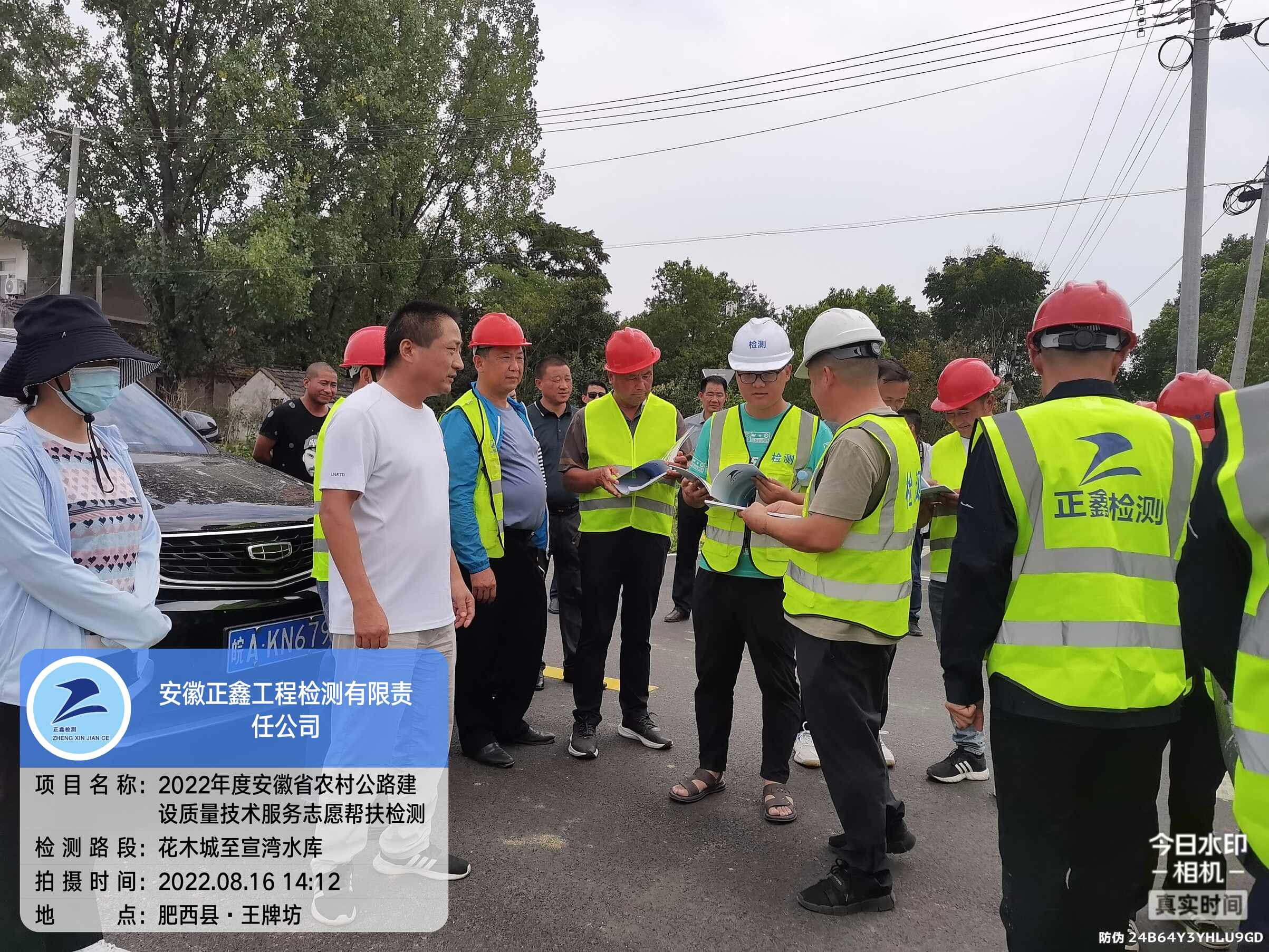 为响应安徽省交通运输厅《关于开展 2022 年度全省农村公路建设质量技术服务志愿帮扶工作的通知》号召,安徽正鑫工程检测有限责任公司积极主动报名参与;并经省交通质安中心资格能力审核通过,分配我公司负责合肥市志愿帮扶工作。为确保顺利完成此项光荣任务,我公司提前筹划编制志愿帮扶检测实施方案,召开技术交底会等准备工作。