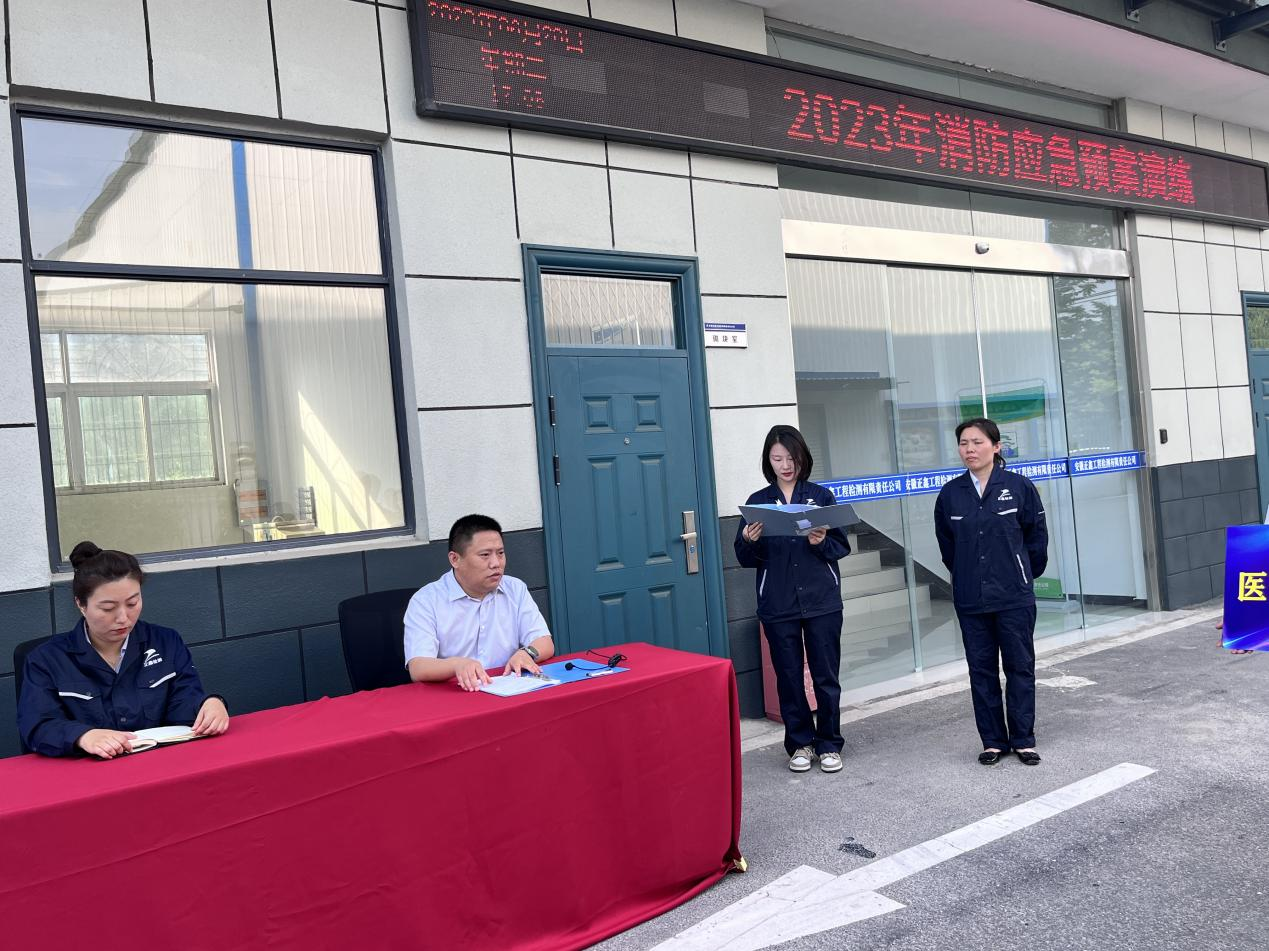 为认真贯彻“安全第一,预防为主”的方针,有效的防范和处理消防事故,建立快速、高效的应急救援体系,最大限度减少人员伤亡和财产损失,把事故危害降到最低点,维护人民群众的生命财产安全,切实开展好“人人讲安全,个个会应急”为主题的安全月活动,正鑫检测公司于6月20日下午组织开展了消防应急预案演练活动,公司全体人员共同参加演练,公司经理王思伟亲临预案演练现场观摩指导。