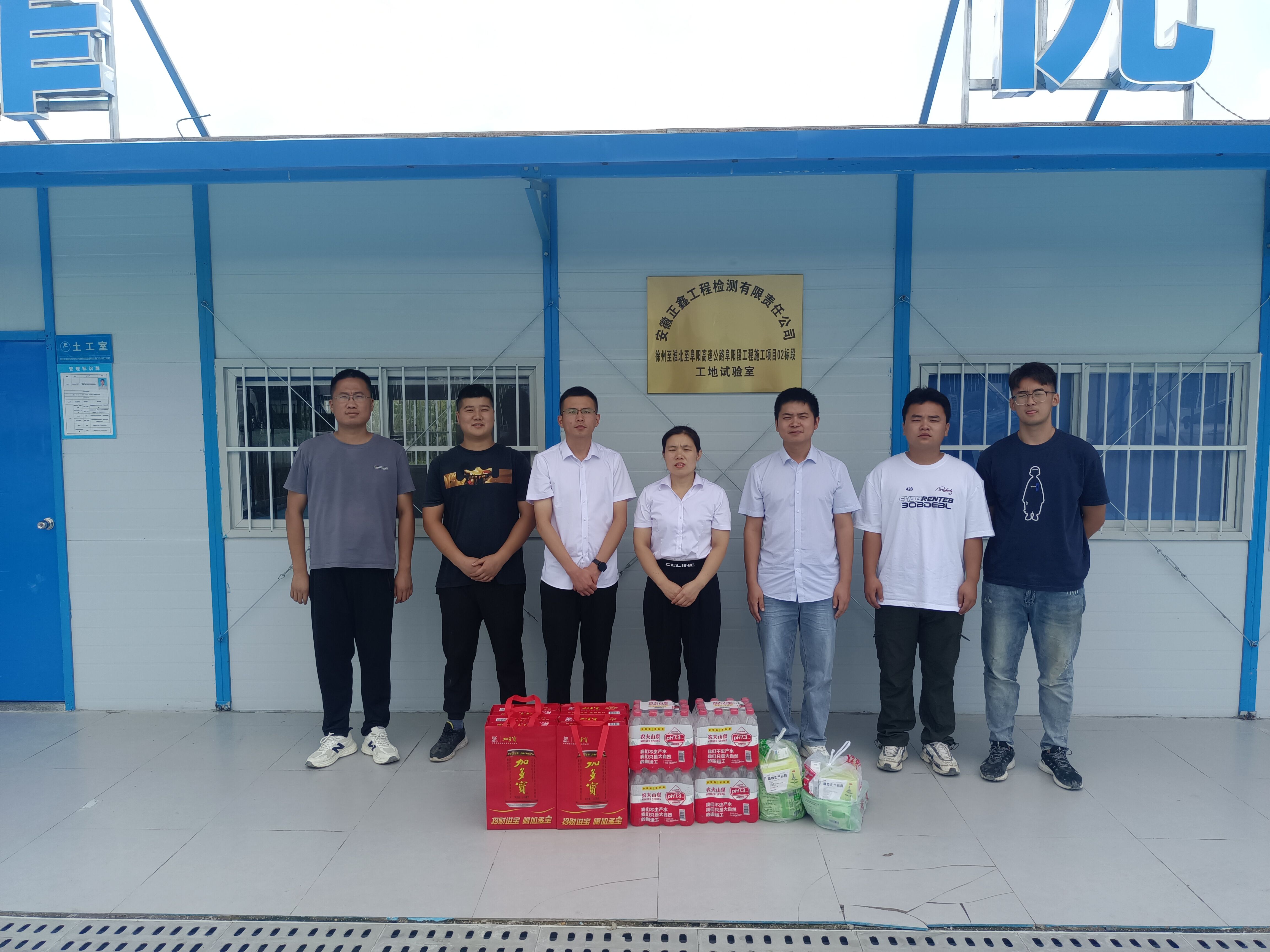 7月25日正鑫检测公司经理助理刘岩、张曼对徐淮阜高速、阜南、颍上等五个直管项目试验室开展高温慰问活动,为工作人员送去清凉、关怀与问候。