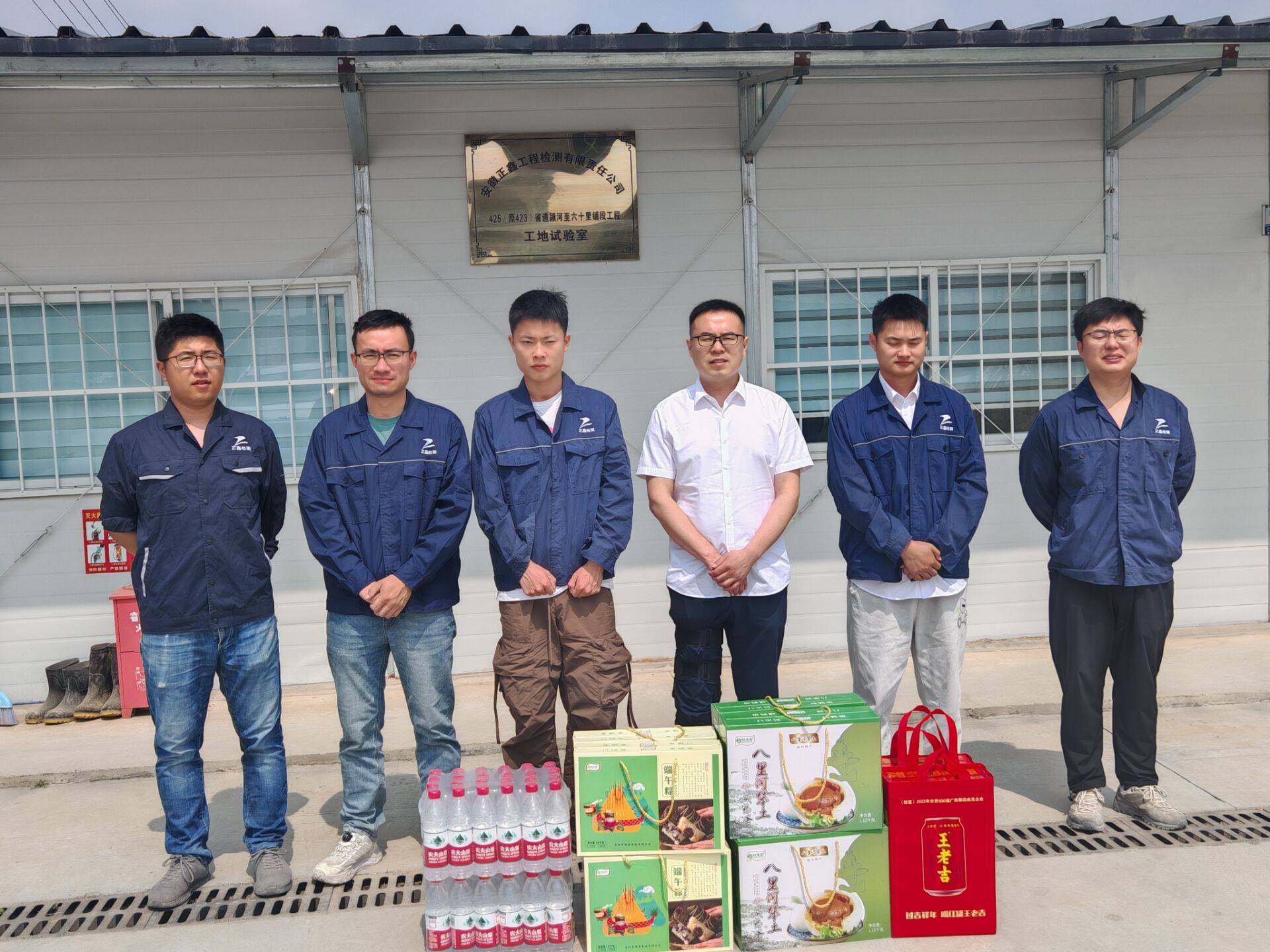6月6日公司经理助理刘岩、王杨杨对徐淮阜高速、颍上425等直管项目试验室进行慰问,为项目一线员工送去粽子、咸鸭蛋等慰问品并向他们致以节日祝福,衷心感谢一线员工们的辛勤付出。