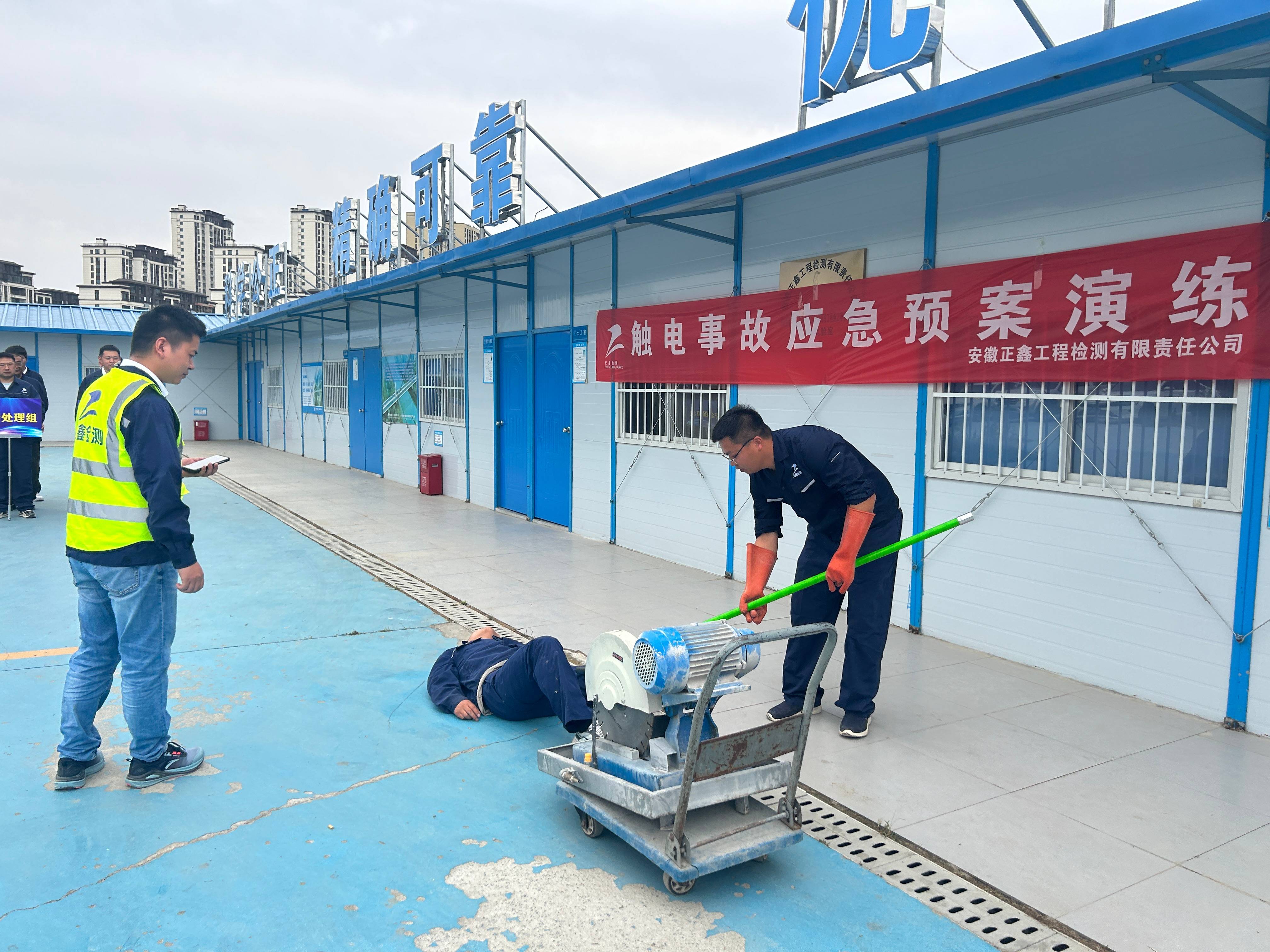 为认真贯彻“安全第一,预防为主”的方针,切实开展好“人人讲安全,个个会应急”为主题的安全月活动。6月18日,正鑫检测公司徐淮阜高速阜阳段02标段工地试验室组织开展了触电事故应急预案演练活动,试验室全体人员共同参加演练,公司经理王思伟亲临预案演练现场观摩指导。