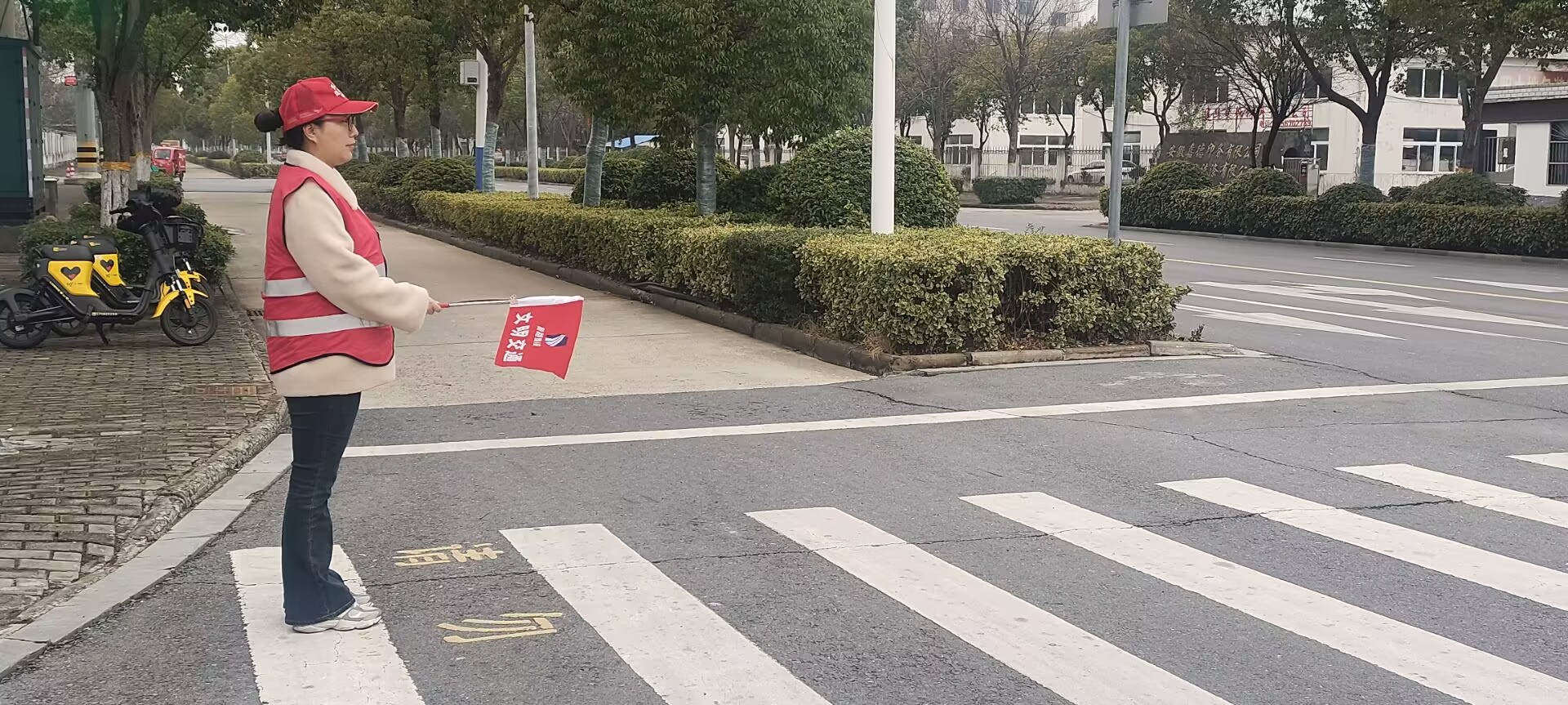“您好,为确保您的安全,请佩戴安全头盔”、“您好,请不要在骑车的时候使用手机!”,志愿者们在路口的人行横道指挥和引导行人、非机动车有序通行,劝导驾乘摩托车、电动车佩戴安全头盔等,同时为过往群众讲解佩戴安全头盔以及系安全带的重要性,提醒广大交通参与者遵守交通规则,文明行车。