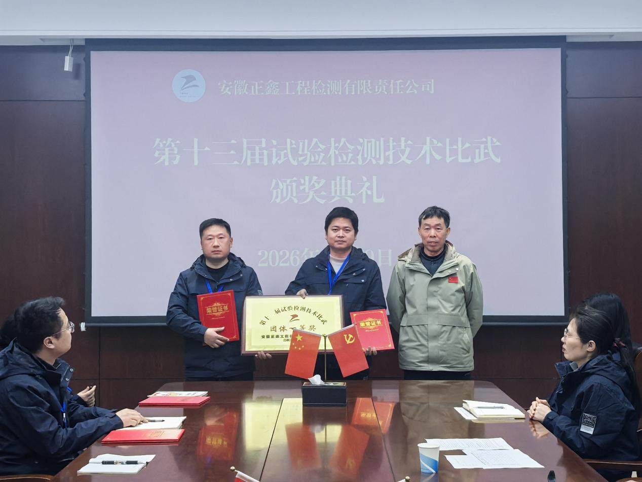 为全面夯实试验检测专业根基,锤炼高素质技术人才队伍,3月19日,正鑫检测公司隆重举办2026年第十三届试验检测技术比武大赛。经过多轮激烈角逐与严谨评审,大赛各项赛事圆满收官,颁奖典礼顺利举行。
