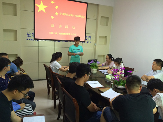 6月18日,正鑫检测公司在会议室组织了“中国梦 劳动美---永远跟党走”主题演讲活动。经过各部室推荐,四组选手从不同角度阐述了自己对党的热爱,对中国梦的祝福,对劳动美的理解,讴歌了党的丰功伟绩,以及为实现中华民族伟大复兴中国梦而奋斗的豪情壮志,表达了员工爱岗敬业、无私奉献的精神。